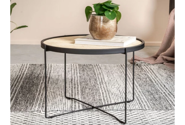 Okrúhly konferenčný stolík Liam je moderný a napriek tomu aj veľmi útulný, vďaka neobvyklej kombinácii materiálov, ktoré dávajú stolíku zaujímavý šmrnc. Čierny kovový rám v kombinácii s guľatou doskou z hnedého ratanového výpletu, vyzerá veľmi ľahko a vytvára v miestnosti príjemnú hrejivú atmosféru. Stolík s priemerom 58 cm môže stáť pri sedačke, pohovke, kresle alebo môže nájsť svoje využitie aj ako odkladací stolík na kvety či lampičku.