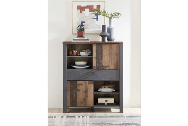 Skrinka s priehradkami z kolekcie Cardiff – exkluzívna optika v mestskom industriálnom štýle v kombinácii imitácia brúseného kovu s vintage optikou drevených dosiek. Ľahko si tak zariadite interier, ktorý bude nielen praktický, ale aj zaujímavý na pohľad.