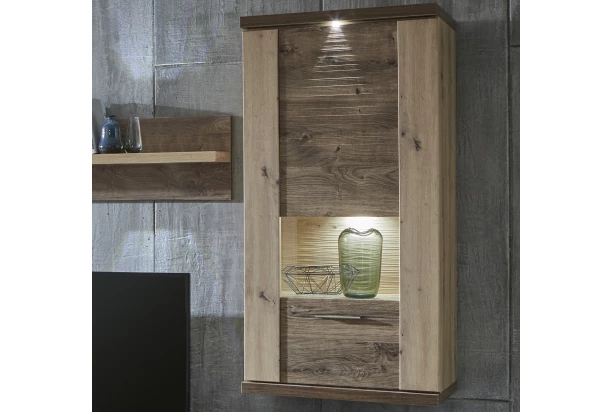 Závesná vitrína Grande, dub artisan/dub ribbeck, s osvetlením, ľavá