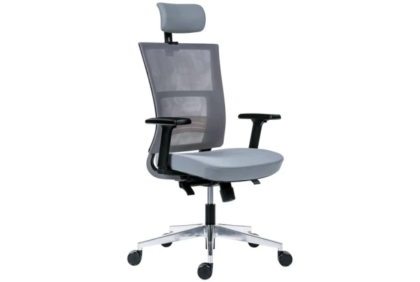 Moderné kancelárske kreslo v šedom prevedení, pre široké použitie v domácom i bežnom kancelárskom prostredí. Spĺňa všetky požiadavky pre plnohodnotné sedenie a ponúka vysoké priedušné operadlo s bedrovou výstuhou, opierkou hlavy, kvalitný sedák zo studenej peny, synchrónny mechanizmus s nastavením sily protiváhy a v neposlednom rade aj moderný dizajn. Ovládnite tak ľahko spôsob Vášho sedenia.
