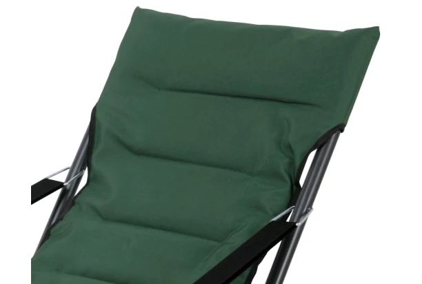 Praktická záhradná stolička má skladaciu kovovú konštrukciu a tmavo zelený látkový sedák. Vďaka ľahkému prenášaniu a skladovaniu je ideálny nielen na záhradu, balkón i do prírody na akýkoľvek piknik.