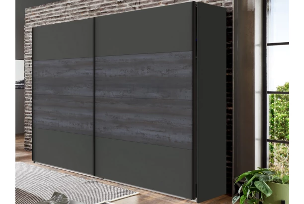 Veľká šatníková skriňa s 2 posuvnými dverami so šírkou 270 cm z kolekcie Göteborg, zaujme na pohľad imitáciou šedej vintage ocele. Ideálne doplní mladistvý interier v mestskom industriálnom štýle.