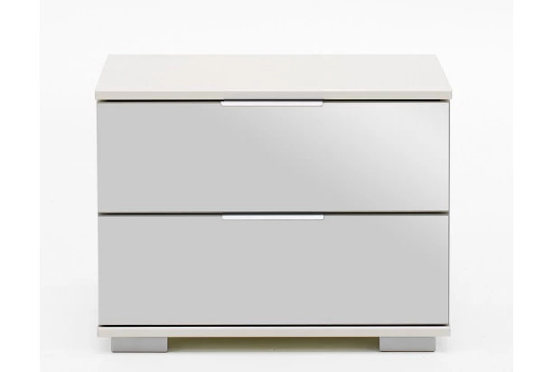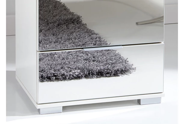 Nočný stolík z programu Easy plus ponúka 2 priestranné zásuvky nad sebou. V kombinácii dekoru biela mat a zrkadlá.