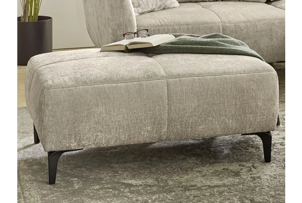 Elegantný veľký taburet s prešitím je očalúnený mäkkou žinilkovou látkou vo farbe béžová. Vďaka kovovým nožičkám je taburet stabilný a zároveň umožňuje ľahkú údržbu podlahy. Taburet môžete ľahko prisunúť k rohovej sedačke a zväčšiť tak plochu na pohodlnú relaxáciu alebo príležitostné spanie.