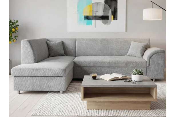 Elegantná rohová sedačka so zaoblenou podrúčkou pasuje do klasickej i modernej obývačky. Sedačka je vybavená rozkladacou funkciou aj úložným priestorom pod otomanom, s ktorým tvorí ľavý roh. Očalúnená mäkko štruktúrovanou látkou vo farbe melírová holubia sivá.