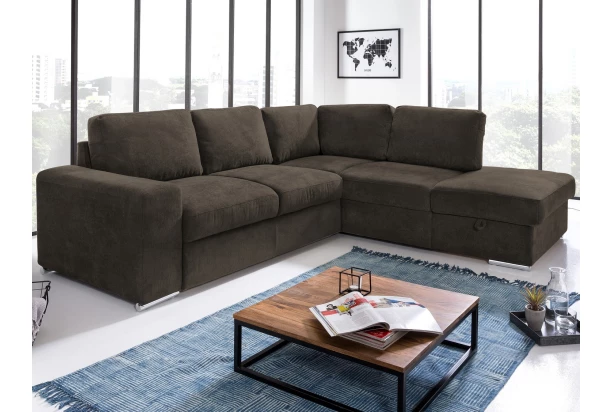 Rohová sedačka Eddi sa svojim univerzálnym štýlom hodí do každého interiéru a vďaka svojim rozmerom nájde svoje miesto takmer v každom rohu miestnosti, kde vytvorí pohodlné zákutia. Rohová sedacia súprava je vybavená úložným priestorom pod otomanom a vytvára pravý roh. Je očalúnená príjemne mäkkou štruktúrovanou látkou v odtieni tmavo hnedá espresso. Sedačku je možné vďaka rozkladacej funkcii ľahko premeniť na lôžko na príležitostné spanie.