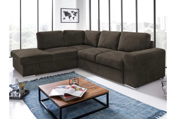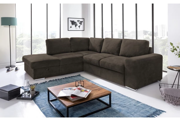 Rohová sedacia súprava Eddi, tmavo hnedá espresso látka, ľavý roh