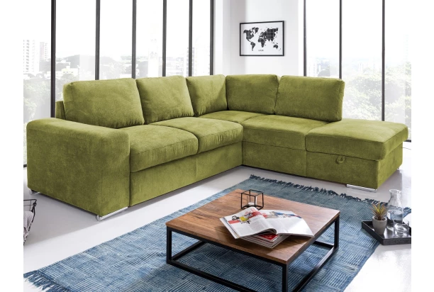 Rohová sedačka Eddi sa svojim univerzálnym štýlom hodí do každého interiéru a vďaka svojim rozmerom nájde svoje miesto takmer v každom rohu miestnosti, kde vytvorí pohodlné zákutia. Rohová sedacia súprava je vybavená úložným priestorom pod otomanom a vytvára pravý roh. Je očalúnená príjemne mäkkou štruktúrovanou látkou v odtieni zelená. Sedačku je možné vďaka rozkladacej funkcii ľahko premeniť na lôžko na príležitostné spanie.