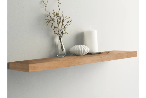 Polica na stenu so šírkou 80 cm v dekore dub artisan – jednoduchý univerzálny design pasuje do každého interiéru aj miestnosti. Kovové konzoly na zavesenie sú prakticky ukryté zo zadnej strany.