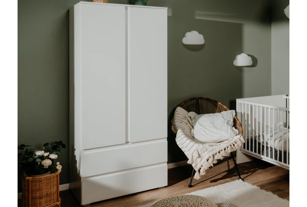 Šatníková skriňa so šírkou 80 cm z programu Image – minimalistický dizajn nábytku je úplne univerzálny a hodí sa do každého moderného interiéru. Táto skriňa obsahuje zásuvky a za otočnými dverami nájdete police aj šatníkové tyče.