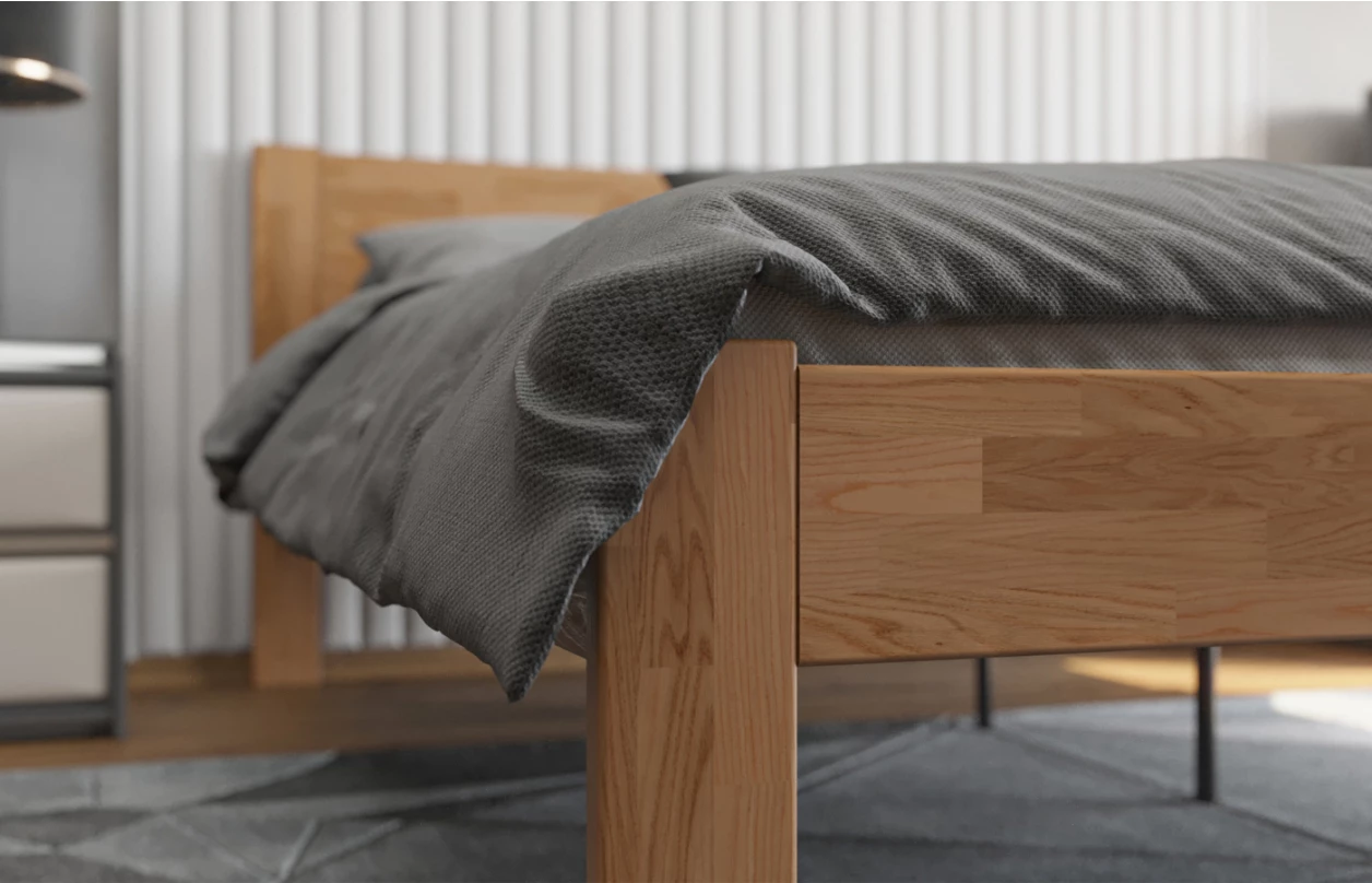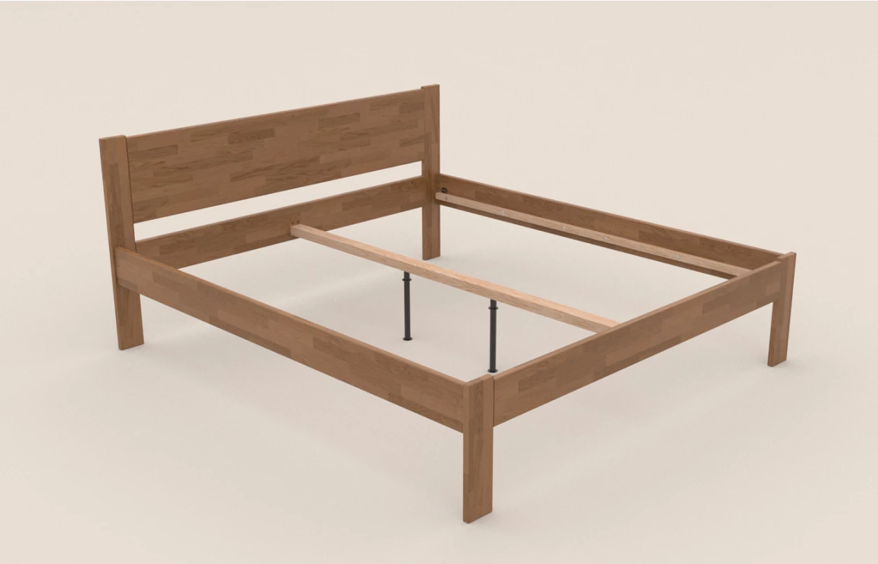 - rohové spoje posteľového rámu: tradičné a veľmi pevné rohové spojenie systémom závrtnej matice a skrutkového tiahla s prídavnými kolíkmi – také rohové spojenie pri celomasívnej posteli je možné právom považovať za najpevnejšie a najodolnejšie voči dynamickému zaťaženiu postele