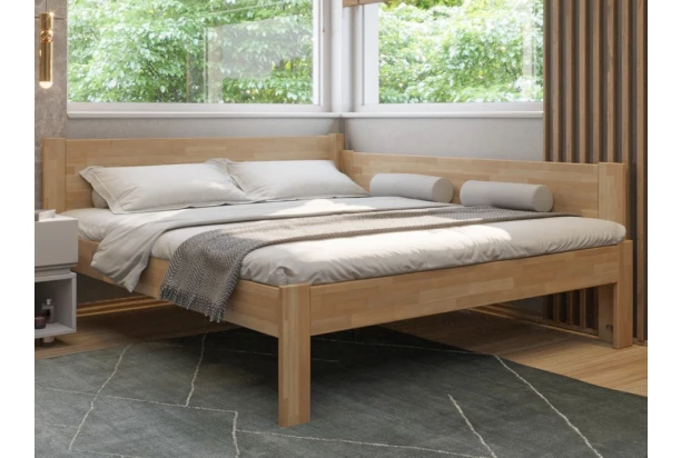 Rohová posteľ so zástenou vpravo Fava P 180x200 cm, prírodný buk