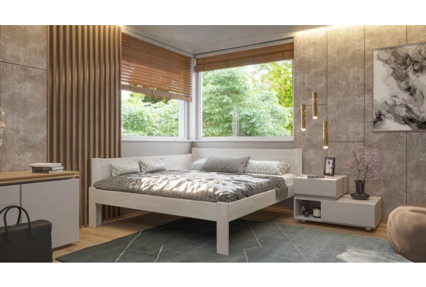 Rohová posteľ so zástenou vľavo Fava L o veľkosti lôžka 180×200 cm z kolekcie MASANO® je vyrobená z masívneho bukového dreva v bielenom odtieni. Kvalitné spracovanie, pevnosť a úplne univerzálny štýl – dvojlôžková posteľ sa tak hodí do akejkoľvek spálne všetkých, ktorí sa radi obklopujú prírodnými materiálmi. Praktickú posteľ s ľavou bočnou zástenou tak môžete ľahko umiestniť do rohu miestnosti – ušetríte tým tak priestor v spálni a zároveň si vytvoríte príjemné romantické zákutia.
