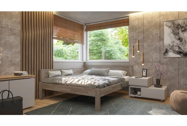 Rohová posteľ so zástenou vľavo Fava L o veľkosti lôžka 180×200 cm z kolekcie MASANO® je vyrobená z masívneho bukového dreva v šedom odtieni. Kvalitné spracovanie, pevnosť a úplne univerzálny štýl – dvojlôžková posteľ sa tak hodí do akejkoľvek spálne všetkých, ktorí sa radi obklopujú prírodnými materiálmi. Praktickú posteľ s ľavou bočnou zástenou tak môžete ľahko umiestniť do rohu miestnosti – ušetríte tým tak priestor v spálni a zároveň si vytvoríte príjemné romantické zákutie.