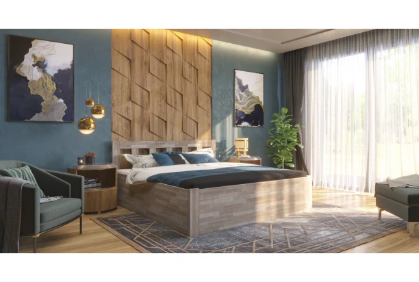 - rohové spoje posteľového rámu: tradičné a veľmi pevné rohové spojenie systémom závrtnej matice a skrutkového tiahla s prídavnými kolíkmi – také rohové spojenie pri celomasívnej posteli je možné právom považovať za najpevnejšie a najodolnejšie voči dynamickému zaťaženiu postele