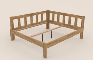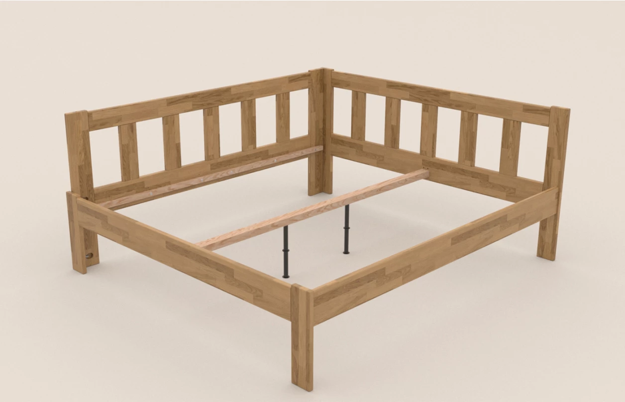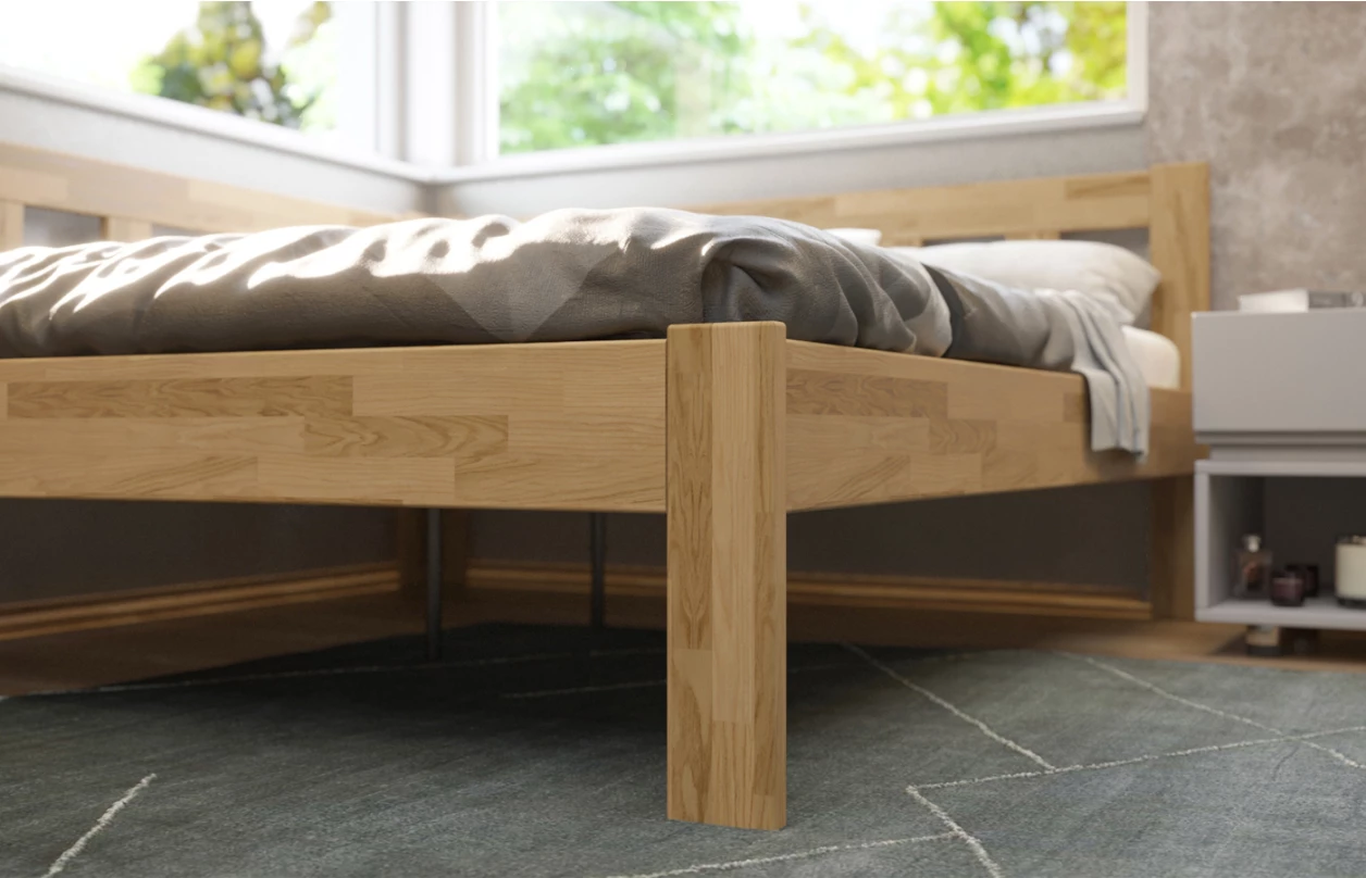 - rohové spoje posteľového rámu: tradičné a veľmi pevné rohové spojenie systémom závrtnej matice a skrutkového tiahla s prídavnými kolíkmi – také rohové spojenie pri celomasívnej posteli je možné právom považovať za najpevnejšie a najodolnejšie voči dynamickému zaťaženiu postele