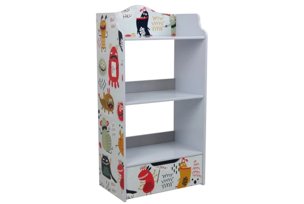 Roztomilý detský regál s motívom farebnej príšerky dokonale doplní a rozveselí priestor detskej izby. Obsahuje 3 priehradky a malý úložný priestor.