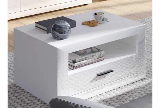 Konferenčný stolík so zásuvkou Colmar, biely lesk