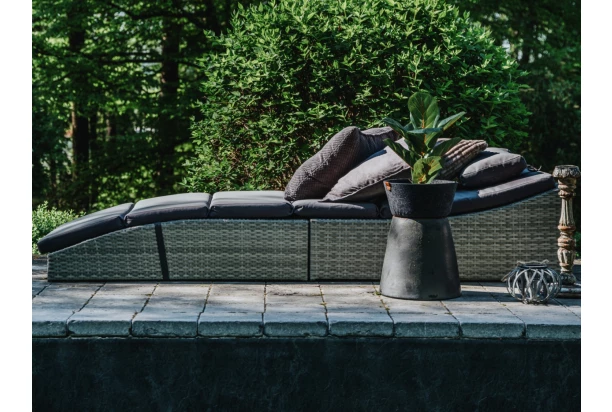 Moderné záhradné lehátko v zaoblenom tvare v kombinácii kovu a odolnej imitácie šedo-hnedého ratanu. Polohovateľné operadlo s vankúšikom pod hlavu a mäkký vankúš na ležanie sa postarajú o váš komfortný odpočinok na čerstvom vzduchu alebo aj vo vnútri v priestore zimnej záhrady, kde lehátko výborne vynikne. Vďaka skladacej konštrukcii je možné lehátko navyše prakticky zložiť, čo oceníte napríklad počas skladovania.