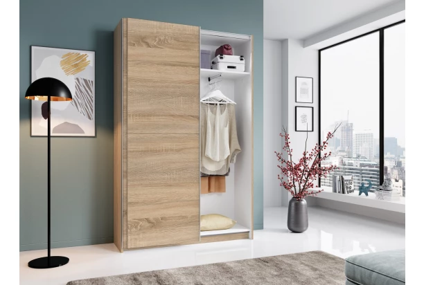 Šatníková skriňa v dekore dub sonoma o šírke 125 cm a zmenšenej hĺbke 38 cm pasuje aj do veľmi malého priestoru – ideálne využitie aj v chodbe alebo predsieni. Táto skriňa v útulnom dubovom dekore obsahuje police a výsuvnú šatníkovú tyč.