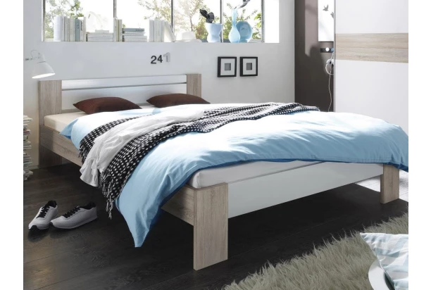 Moderná posteľ o veľkosti lôžka 140×200 cm sa univerzálne hodí do akejkoľvek malej spálne, prípadne aj izby teenagera. Vyrobená v obľúbenej kombinácii dub sonoma/biela.