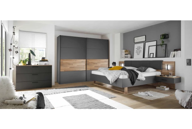 Zásuvková komoda z kolekcie Rivoli – nábytok v drevodekore parketového duba s tmavým grafitom vnesie do priestoru Vašej spálne nielen moderný štýl, ale predovšetkým teplo domova. Do 3 širokých zásuviek môžete v spálni ukladať bielizeň, prípadne skrinku využiť kdekoľvek inde na uloženie každodenných potrieb.