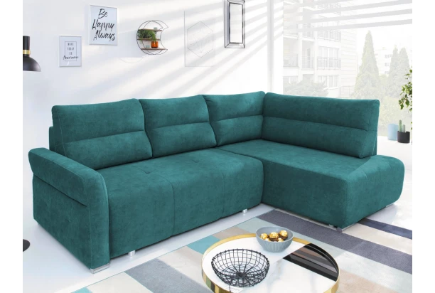 Priestranná rohová sedačka s pohodlne tvarovanými vankúšmi poslúži prakticky v malom aj veľkom byte. Očalúnená látkou vo farbe petrolejová a vytvára pravý roh. Vďaka rozkladacej funkcii na lôžko o veľkosti 140×210 cm je vhodná aj na trvalé spanie pre dve osoby. Môže byť teda napríklad vhodným riešením do malých bytov, kde poslúži cez deň ako rohová sedacia súprava a v noci ako lôžko pre komfortné spanie, ktoré je možné behom chvíľky ľahko rozložiť.