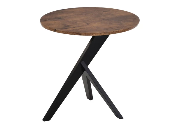 Odkladací stolík na čiernej podnoži v extravagantnom štýle zaujme na pohľad. Guľatá odkladacia plocha v dekore divokého duba poslúži na odkladanie kávy, kvetov, lampičky i dekorácií.