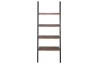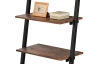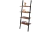 Čierny stojací kovový regál v šikmom tvare so 4 policami v dubovom dekore je univerzálny do obývačky, pracovne i izby teenagera. Konštrukcia určená na umiestnenie k stene.