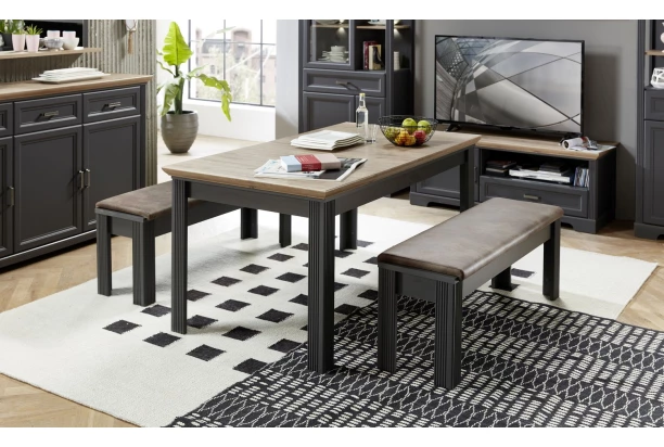 Rozkladací jedálenský stôl o rozmere 160×90 cm v prevedení grafit s dubovým drevodekorom z kolekcie Jasmin – nábytok v modernom vidieckom štýle s dôrazom na detail nadväzuje na tradíciu útulne zariadeného domova a priamo láka k tomu, aby ste si vytvorili prostredie, kde sa budete cítiť dobre. Kombinujte tak jednotlivé elementy z tohto radu a vytvorte si štýlový rustikálny interiér s nádychom tradície.