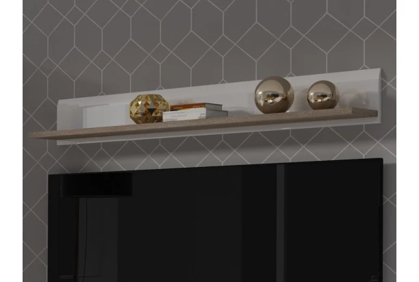 Nástenná polica Linate, biely lesk/dub, 150 cm