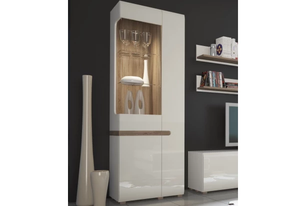 Vysoká vitrína Linate, biely lesk/dub, ľavá