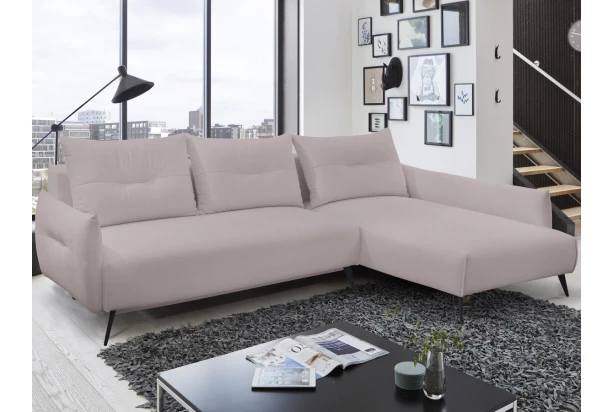 Doprajte si každodenné príjemné pohodlie a buďte jednoducho trendy. Pohodlná rohová sedacia súprava na čiernych kovových nohách, pôsobí elegantne a vzdušne v každom priestore obývačky. Očalúnená mäkkou látkou v odtieni svetlo ružová. Vankúšová optika bočných podrúčiek šetrí okolité miesto a sedačka, tak ľahko rozmerovo pasuje do mnohých interiérov. Rohová sedačka s otomanom vytvára pravý roh.