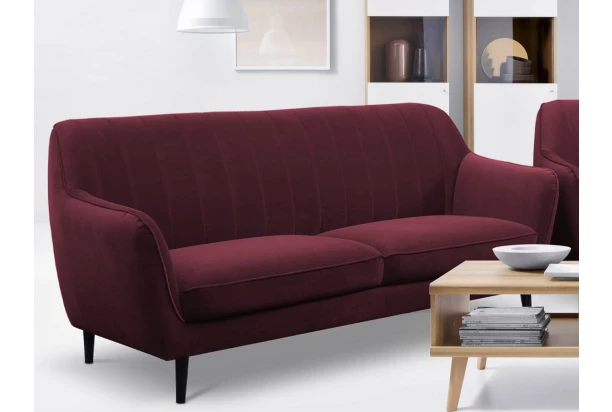 Elegantná trojmiestna pohovka na masívnych drevených nohách poskytuje výborný komfort vďaka kvalitnému vypolstrovaniu. Očalúnená zamatovo mäkkou látkou vo farbe vínová. Zaoblené tvary dopĺňa látkové lemovanie a zvislé prešitie. Svojím univerzálnym dizajnom sa pohovka hodí do rôzne zariadených interiérov – od škandinávskeho štýlu, cez retro, noblesnú klasiku, až po štýl domáckeho vidieka.