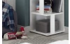 Rohový regál s priehradkami v bielej farbe môže byť vďaka svojim rozmerom umiestnený takmer v každom kúte miestnosti. Obsahuje celkom 6 priehradiek na ukladanie predmetov, časopisov alebo dekorácií.