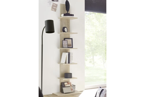 Nástenný regál v dekore dub sonoma s 5 poličkami poslúži na ukladanie akýchkoľvek drobných predmetov alebo dekorácií. Vďaka 50 cm šírke nájde svoje miesto takmer v každom priestore.