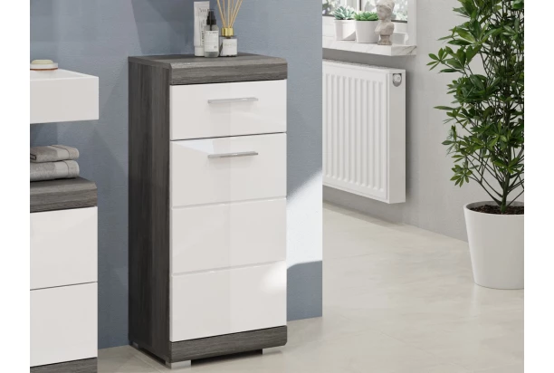 Kúpeľňová stojacia skrinka Scout, šedý dub/biela lesk