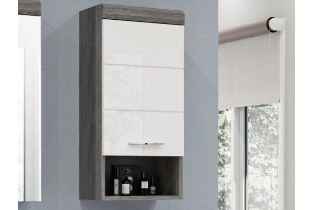 Závesná kúpeľňová skrinka Scout, šedý dub/biela lesk