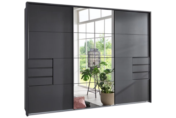 Paspartový rám k šatníkovej skrini Saigon v prevedení tmavo šedý grafit. Slúži ako moderný dekoračný doplnok k bočnej konštrukcii skrine.
