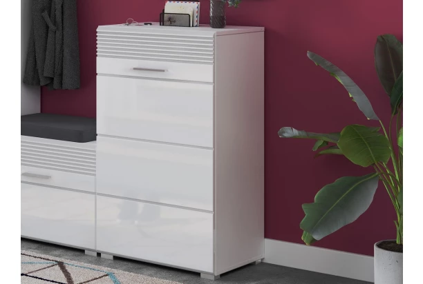 Predsieňová skrinka/botník Linus, bíela lesk
