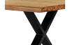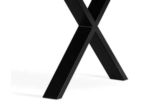 Jedálenský stôl s veľkosťou 240×100 cm je vyrobený z masívneho dubového dreva v kombinácii s čiernou kovovou podnožou v tvare X. Pre všetkých, ktorí majú radi prírodný drevený materiál a zároveň moderný štýl. Jedálenská doska zaujme zámerne zvlnenými hramanmi, vďaka ktorým vynikne efekt masivity.