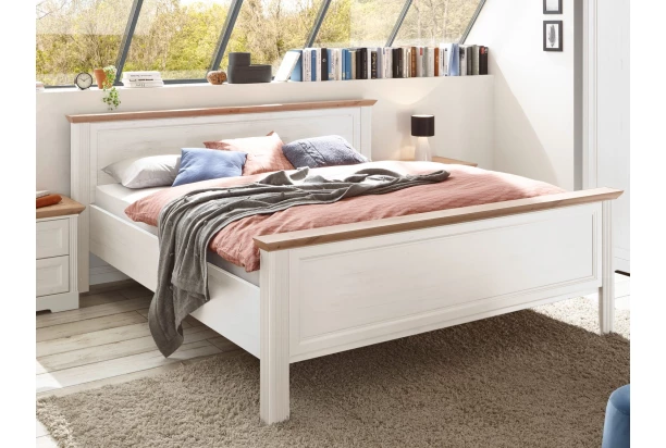 Manželská posteľ o veľkosti lôžka 180×200 cm v prevedení bielená pínia s dubovým drevodekorom z kolekcie Jasmin – nábytok v modernom vidieckom štýle s dôrazom na detail nadväzuje na tradíciu útulne zariadeného domova a priamo láka k tomu, aby ste si vytvorili prostredie, kde sa budete cítiť dobre. Kombinujte tak jednotlivé elementy z tohto radu a vytvorte si štýlový rustikálny interiér s nádychom tradície.