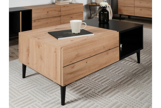 Konferenčný stolík so zásuvkou Nola, dub artisan/čierny