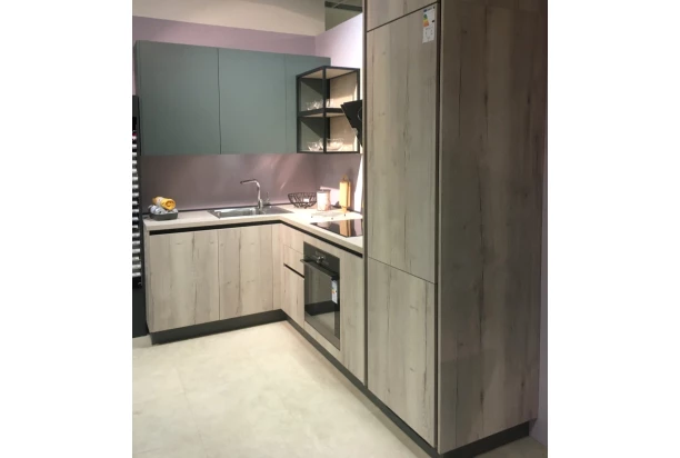 Kompletná zostava kuchyne Roma – extra výhodný odpredaj tovaru z predajne Nitra. Kombinácia dub kašmír/halifax/zelená.
