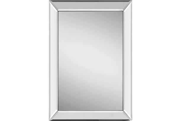 Moderné nástenné zrkadlo s rozmerom 60×90 cm so zrkadlovým rámom a s elegantnou fazetou po obvode má jednoduchý dizajn a hodí sa do každej domácnosti.