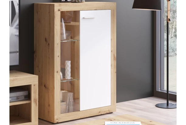 Nízka vitrína Brilon, 78 cm, dub artisan/biela