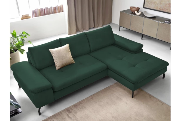 Rohová sedacia súprava Vespa, fľaškovo zelená látka, pravý roh