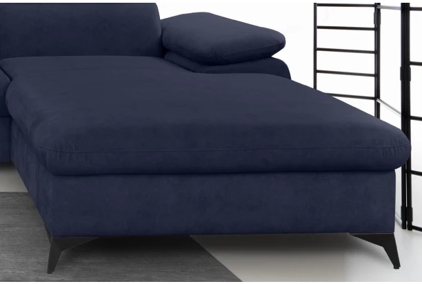 Moderná rohová sedačka Scala poskytuje komfort bez kompromisu v akomkoľvek veľkom priestore obývačky. Okrem ideálnych rozmerov ponúka komfortne ladené sedenie doplnené o chrbtové opierky, pri ktorých si môžete nastavovať sklon a prispôsobiť si tak pohodlie podľa seba. V prípade relaxácie využijete priestranný otoman, ktorý pri sedačke vytvára pravý roh. Očalúnená látkou s príjemne mäkkou štruktúrou v odtieni tmavo modrá. Sedacia súprava je tiež vybavená úložným priestorom – ľahko prístupný z prednej strany otomanu. Čierne kovové nohy poskytujú stabilitu a vďaka ich správnej výške je možné pod sedačkou použiť aj robotický vysávač. Táto nadčasová sedačka je jednoducho prispôsobená štandardom dnešnej doby.
