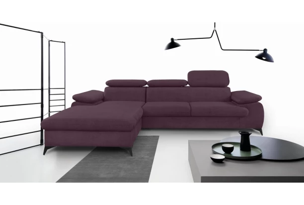 Moderná rohová sedačka Scala poskytuje komfort bez kompromisu v akomkoľvek veľkom priestore obývačky. Okrem ideálnych rozmerov ponúka komfortne ladené sedenie doplnené o chrbtové opierky, pri ktorých si môžete nastavovať sklon a prispôsobiť si tak pohodlie podľa seba. V prípade relaxácie využijete priestranný otoman, ktorý pri sedačke vytvára ľavý roh. Očalúnená látkou s príjemne mäkkou štruktúrou v odtieni hroznová ružovo-fialová. Sedacia súprava je tiež vybavená úložným priestorom – ľahko prístupný z prednej strany otomanu. Čierne kovové nohy poskytujú stabilitu a vďaka ich správnej výške je možné pod sedačkou použiť aj robotický vysávač. Táto nadčasová sedačka je jednoducho prispôsobená štandardom dnešnej doby.