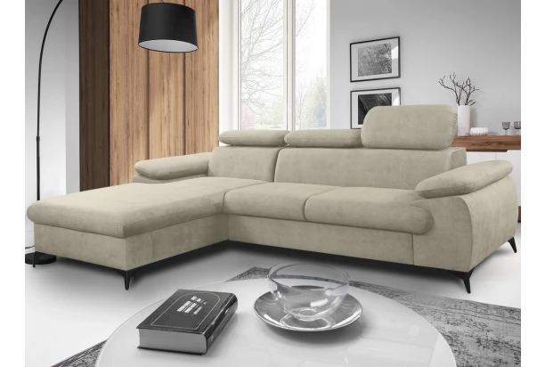 Moderná rohová sedačka Scala poskytuje komfort bez kompromisu v akomkoľvek veľkom priestore obývačky. Okrem ideálnych rozmerov ponúka komfortne ladené sedenie doplnené o chrbtové opierky, pri ktorých si môžete nastavovať sklon a prispôsobiť si tak pohodlie podľa seba. V prípade relaxácie využijete priestranný otoman, ktorý pri sedačke vytvára ľavý roh. Očalúnená látkou s príjemne mäkkou štruktúrou v odtieni béžová. Sedacia súprava je tiež vybavená úložným priestorom – ľahko prístupný z prednej strany otomanu. Čierne kovové nohy poskytujú stabilitu a vďaka ich správnej výške je možné pod sedačkou použiť aj robotický vysávač. Táto nadčasová sedačka je jednoducho prispôsobená štandardom dnešnej doby.
